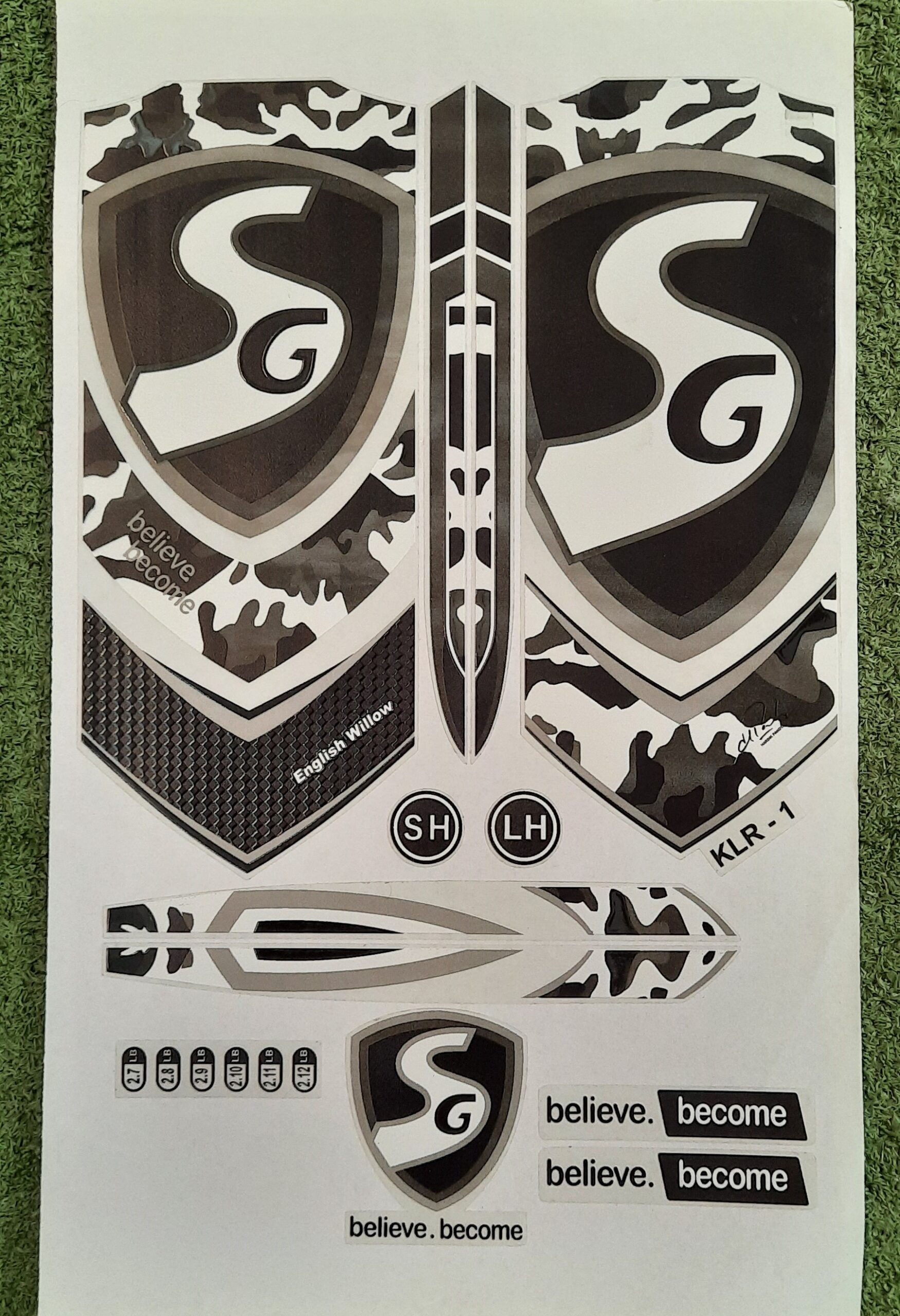 High Quality 3D Embossed SG KLR Xtreme sticker set fitted to Refurbished or New Customized Cricket Bats